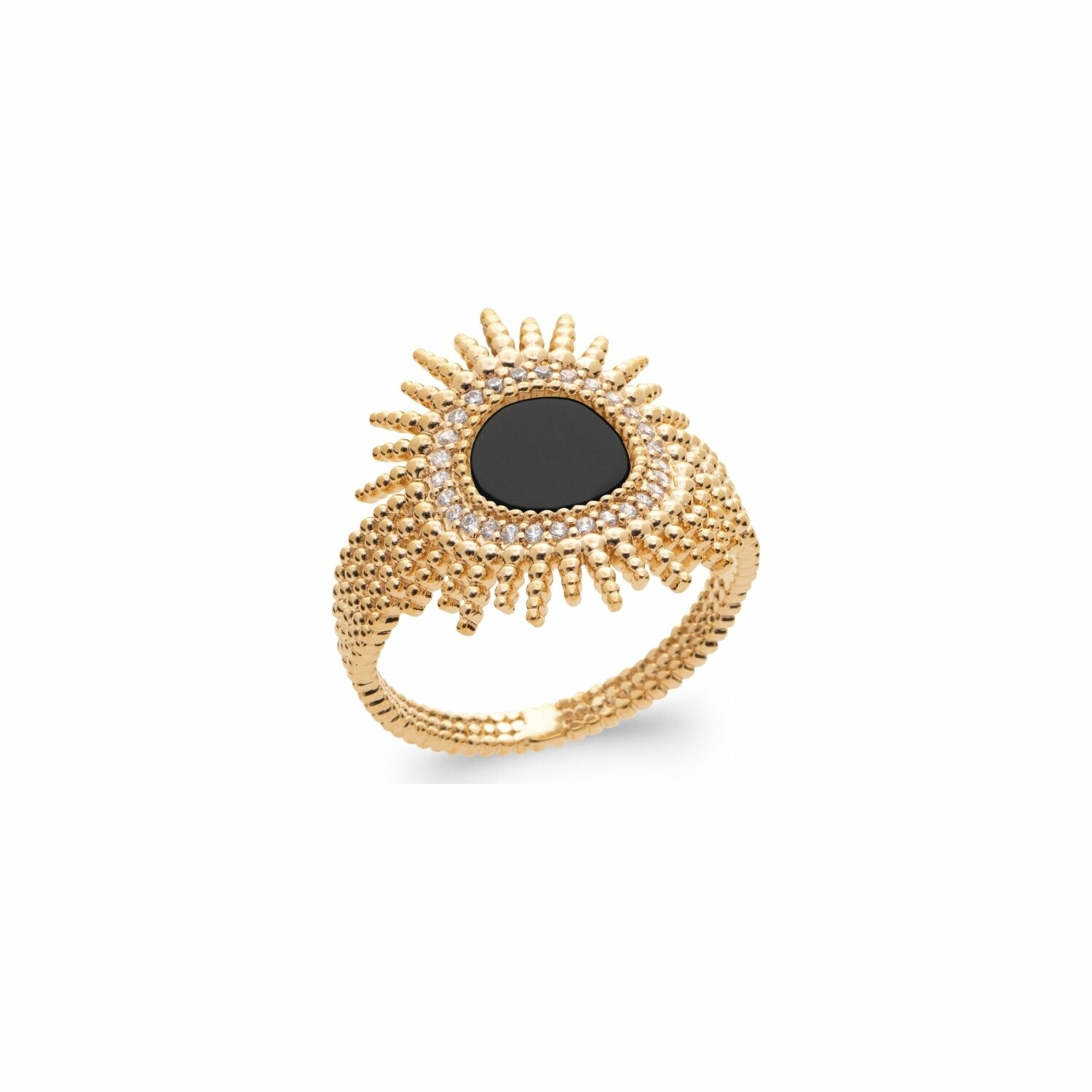 Bague en plaqué or, oxydes de zirconium et pierre véritable
