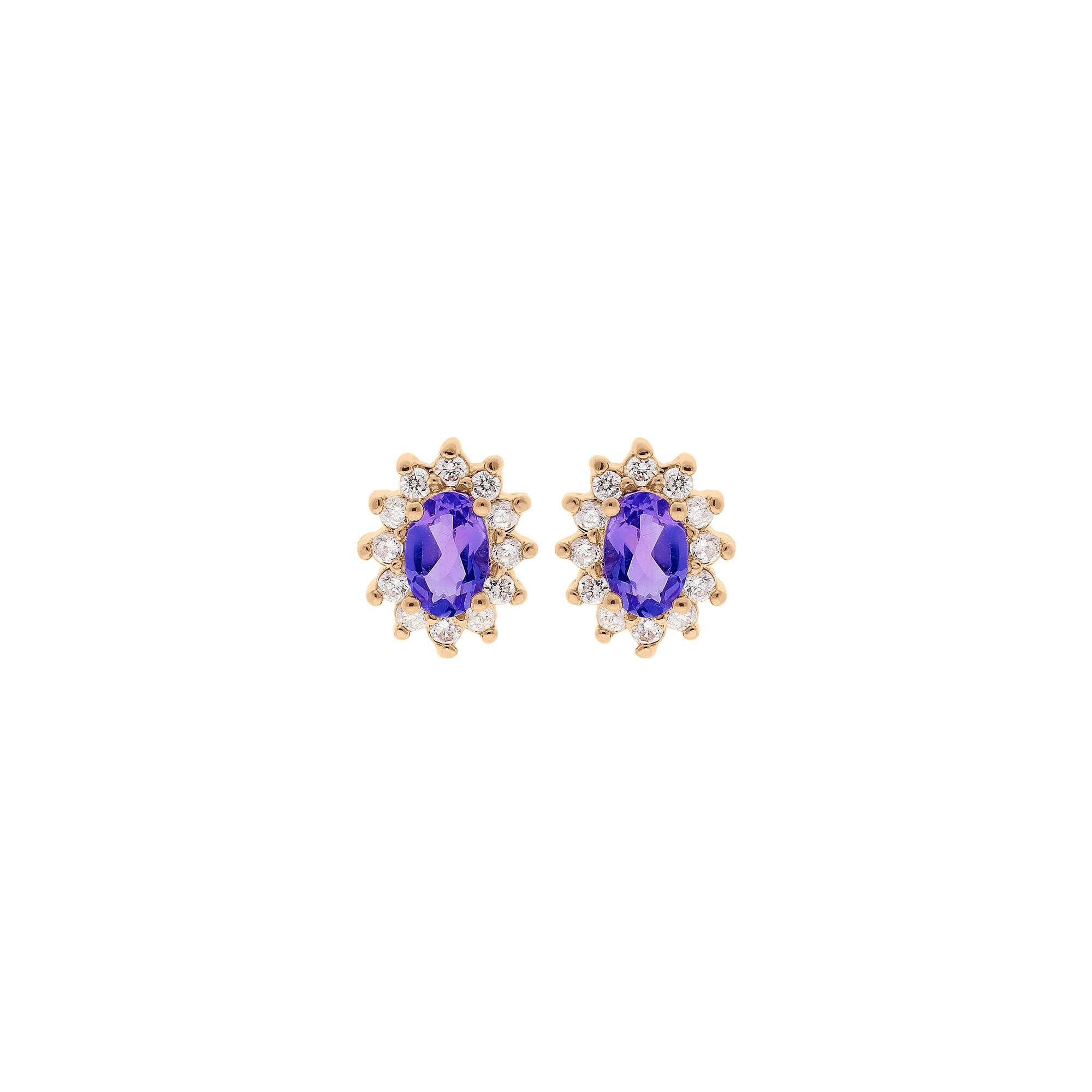 Boucles d'oreilles tige plaqué or améthyste véritable et oxydes blancs sertis
