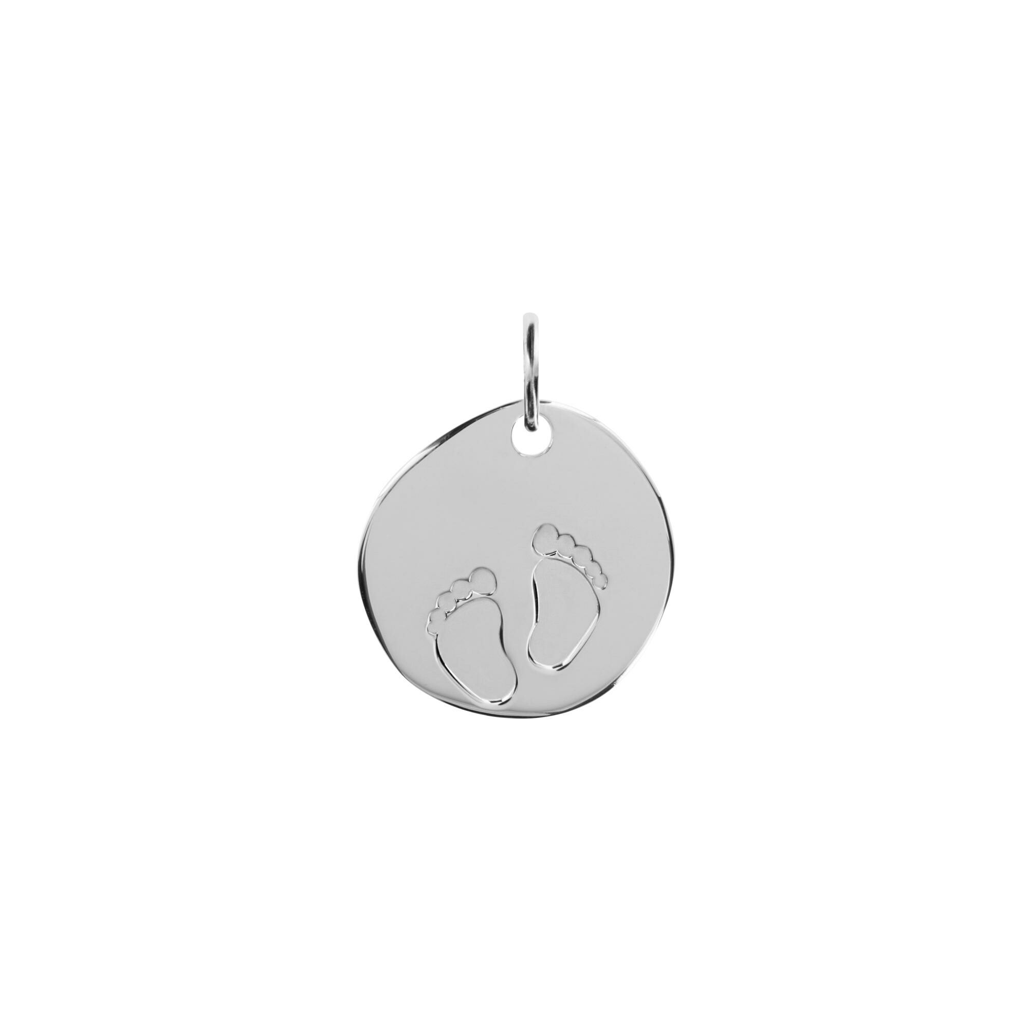 Pendentif galet Empreintes Pieds en argent rhodié